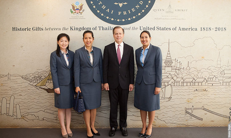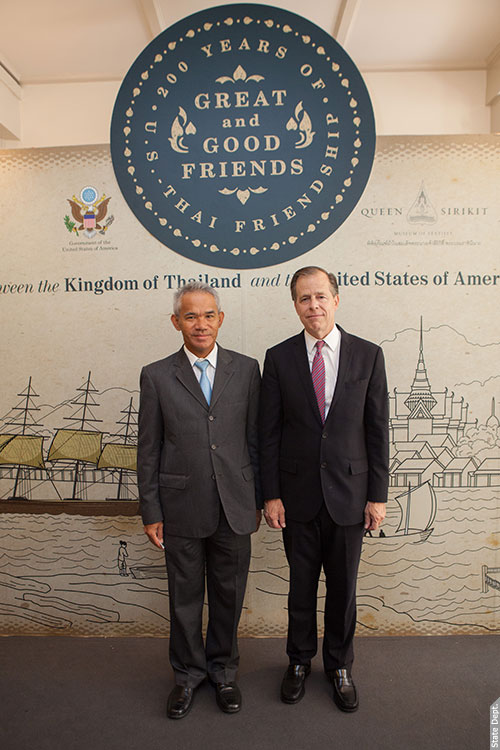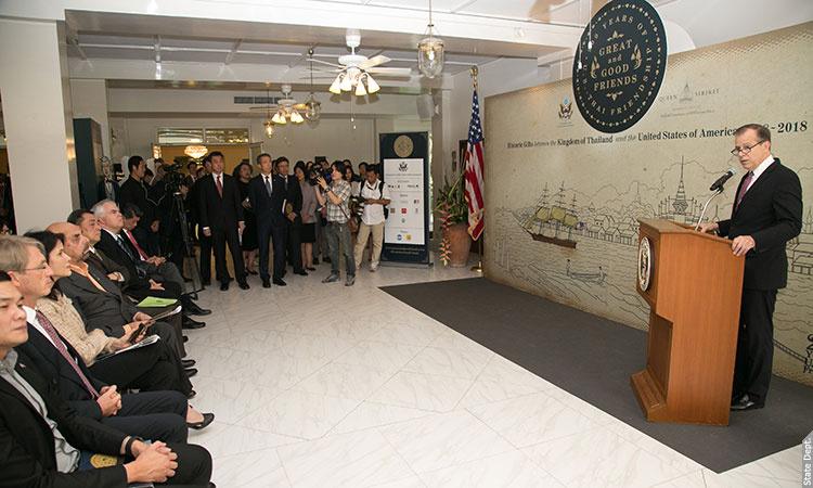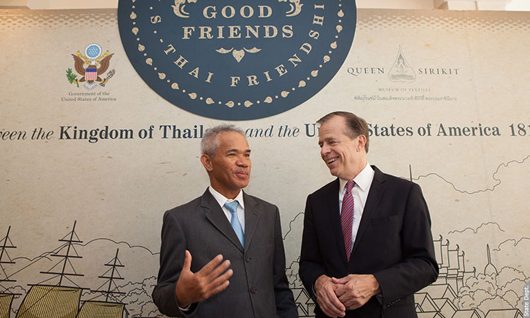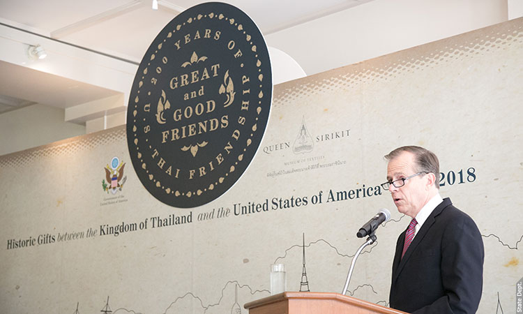 ท่านทูตกล่าวว่า “Great and Good Friends เป็นนิทรรศการที่แสดงให้เห็นถึงความสัมพันธ์อันลึกซึ้งและยืนยาวระหว่างประชาชนชาวอเมริกันและประชาชนชาวไทยประเทศไทยนับเป็นหนึ่งในเพื่อนคนแรกๆของสหรัฐอเมริกาในยุคต้นๆและกระผมอยากที่จะเชิญชวนให้ทุกท่านไปเยี่ยมชมพิพิธภัณฑ์ผ้าในสมเด็จพระนางเจ้าสิริกิติ์ พระบรมราชินีนาถ เพื่อรับทราบด้วยตนเองว่าของขวัญเหล่านี้ช่วยยึดเหนี่ยวมิตรภาพนี้ได้อย่างไรตลอดสิบชั่วอายุคน”