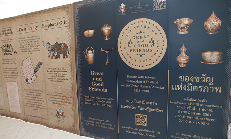 เมื่อวันที่ 8 กุมภาพันธ์ พ.ศ. 2561 เอกอัครราชทูต กลิน ที. เดวีส์ได้แถลงการจัดงานนิทรรศการของขวัญแห่งมิตรภาพเพื่อเฉลิมฉลองวาระครบรอบ 200ปีความสัมพันธ์ระหว่างสหรัฐอเมริกาและราชอาณาจักรไทยโดยรัฐบาลสหรัฐฯ จะจัดงานนิทรรศการขึ้นณพิพิธภัณฑ์ผ้าในสมเด็จพระนางเจ้าสิริกิติ์พระบรมราชินีนาถเพื่อจัดแสดงของขวัญที่แลกเปลี่ยนกันระหว่างสองมิตรประเทศในช่วงเวลาอันสาคัญตลอด 200 ปีที่ผ่านมา