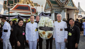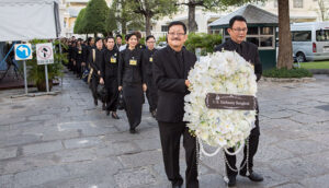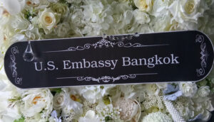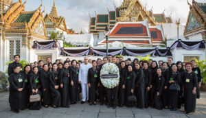 พนักงานสถานเอกอัครราชทูตสหรัฐอเมริกาประจำประเทศไทยและครอบครัวเข้ากราบถวายสักการะพระบรมศพพระบาทสมเด็จพระเจ้าอยู่หัวภูมิพลอดุลยเดช