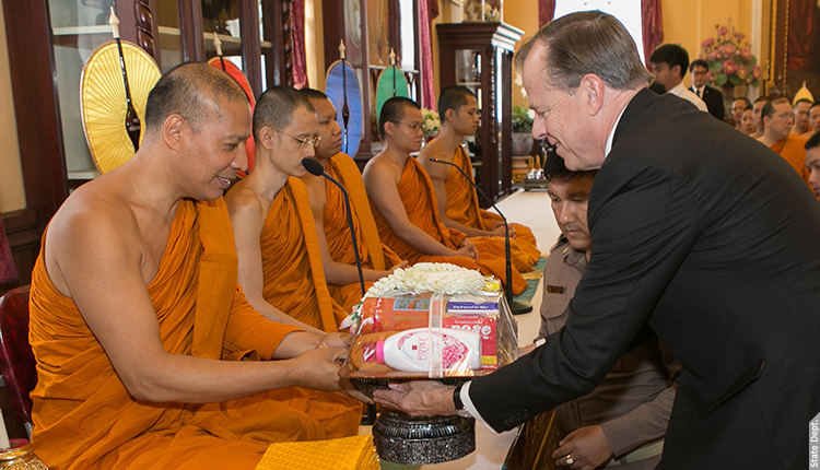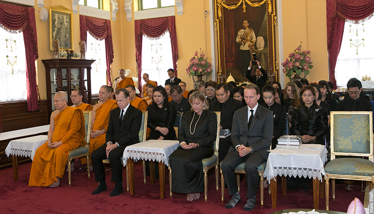 เมื่อวันที่ 2 ธันวาคม 2559 เอกอัครราชทูตเดวีส์และภริยา อัครราชทูตที่ปรึกษาปีเตอร์ เฮย์มอนด์ พร้อมด้วยพนักงานสถานทูตราว 130 คนร่วมพิธีบำเพ็ญกุศลปัญญาสมวารเพื่อถวายเป็นพระราชกุศลแด่พระบาทสมเด็จพระปรมินทรมหาภูมิพลอดุลยเดช ณ วัดบวรนิเวศราชวรวิหาร ในเขตพระนคร เมื่อปี พ.ศ. 2499 พระบาทสมเด็จพระปรมินทรมหาภูมิพลอดุลยเดชทรงเข้าบรรพชาอุปสมบทที่พระอุโบสถวัดพระศรีรัตนศาสดาราม แล้วเสด็จฯ ไปประทับจำพรรษาที่วัดบวรนิเวศวิหารราชวรวิหารเป็นเวลา 15 วันระหว่างที่ทรงดำรงสมณเพศ