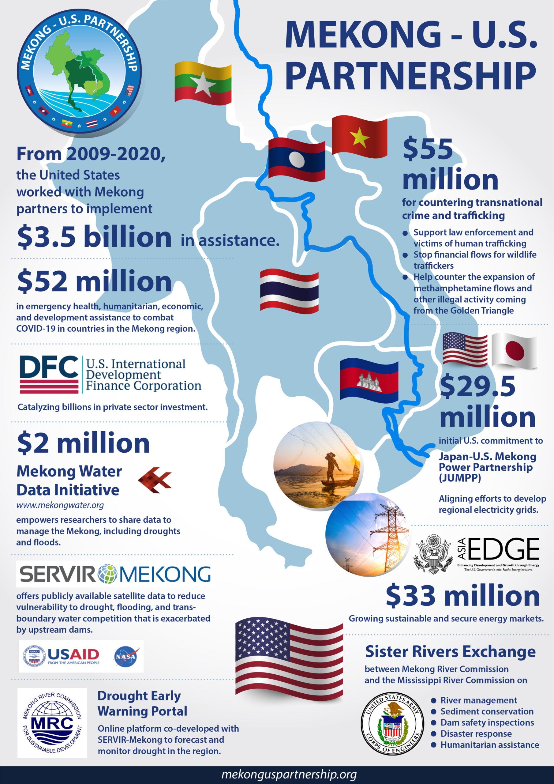 On Friday, along with Deputy Prime Minister Don Pramudwinai and officials from the four other countries in the lower Mekong basin, the United States launched the new Mekong-U.S. Partnership, which will build on decades of collaboration and $3.5 billion in U.S. assistance provided under the Lower Mekong Initiative over the past 11 years. In upgrading our efforts with the Mekong-U.S. Partnership, the United States will support even greater connectivity and development in the region for years to come. With more than $150 million in regional initiatives already in the pipeline, our cooperation through this partnership will expand to include the full range of economic, security, governance, health, and environmental efforts – a fitting approach to collectively address shared challenges in the region, from devastating drought to drug trafficking.